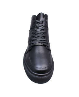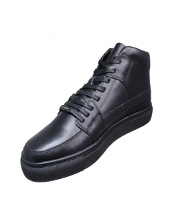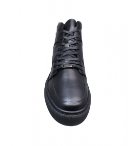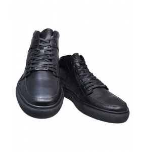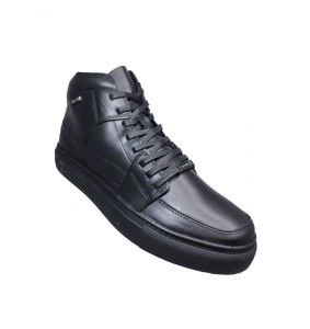 Este botín tipo sneaker combina el estilo contemporáneo con la funcionalidad de una bota urbana. Su capellada está elaborada en cuero legítimo de grano natural, cuidadosamente seleccionado por su durabilidad, resistencia y textura uniforme. El acabado negro semimate le otorga una estética sobria y refinada, ideal para cualquier estilo, desde un look casual con jeans hasta un conjunto más elegante con pantalón de gabardina y blazer.