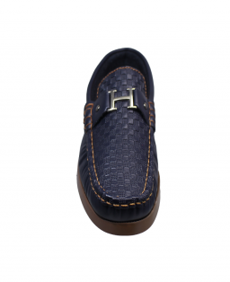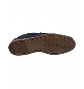 El azul marino de la capellada se combina armónicamente con los tonos cálidos del pespunte y la suela, creando una estética equilibrada y moderna. Esta combinación de colores permite que el mocasín se adapte fácilmente a distintas prendas —desde jeans y pantalones chinos hasta atuendos más formales—, convirtiéndolo en una pieza clave dentro del guardarropa masculino.