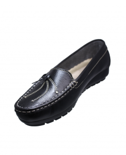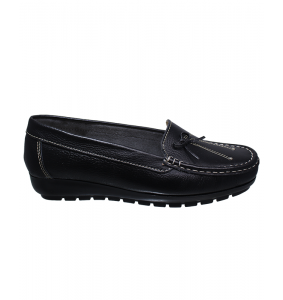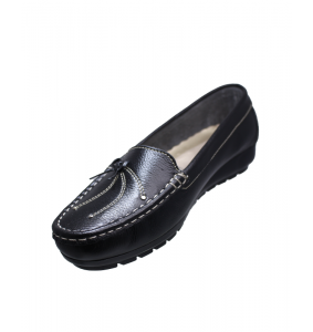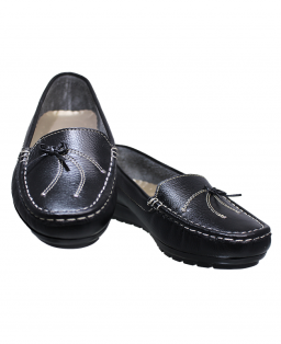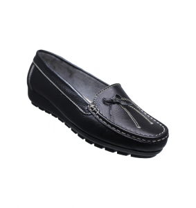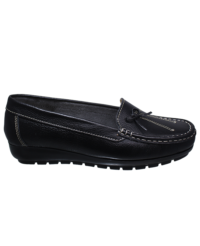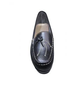 Su diseño clásico resalta por la capellada con costuras en contraste que aportan un aire sofisticado y artesanal, además de un delicado lazo decorativo en la parte superior que le da un toque distintivo y femenino. El tono negro, versátil y atemporal, lo convierte en un calzado fácil de combinar con cualquier prenda, adaptándose tanto a looks formales como casuales.