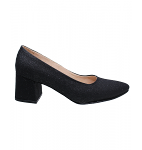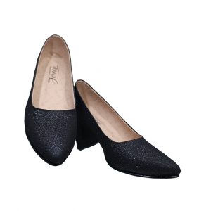 Este elegante zapato de tacón para dama en color negro está diseñado para destacar por su brillo sutil, su comodidad y su estilo clásico-modernizado. Su capellada en material sintético escarchado presenta un acabado uniforme que refleja pequeños destellos al moverse, creando un efecto sofisticado pero discreto, ideal para quienes buscan elegancia sin exageración.