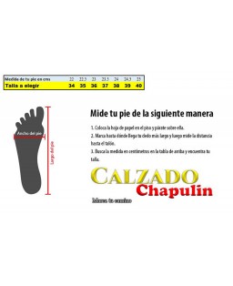 La suela en material TR, de estructura firme y base amplia, garantiza una pisada estable y segura. Se complementa con un tacón ancho de 3 1/2 cm, diseñado para ofrecer mayor superficie de apoyo, mejor equilibrio y menor presión en el talón.