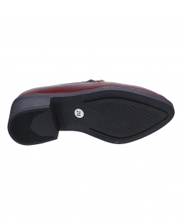 Está elaborado en cuero genuino color cereza, un tono profundo y sofisticado que aporta carácter y distinción al diseño. El cuero presenta una textura suave con grano natural, visible en toda la capellada, que no solo realza su apariencia elegante, sino que también ofrece mayor flexibilidad y resistencia para el uso diario.