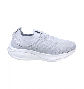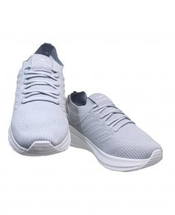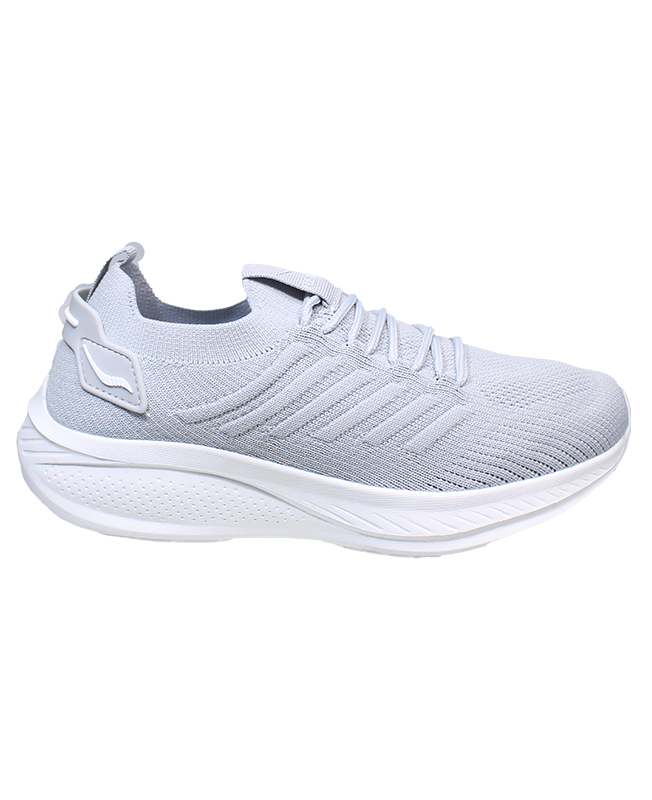 Su capellada tejida en textil gris claro aporta un toque contemporáneo y elegante, a la vez que ofrece una estructura flexible, ligera y altamente transpirable. Este material permite una ventilación continua, evitando la acumulación de calor y manteniendo el pie fresco durante toda la jornada.